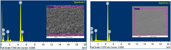 Figure 11. Chemical composition of the Ti6Al4V ELI feedstock powder (left) and EBM-fabricated specimen (right) obtained through EDS Test.