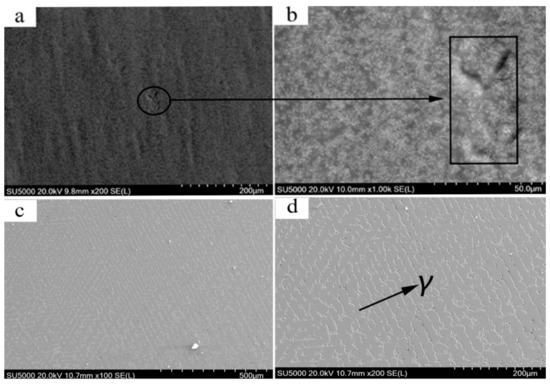 In addition, in the processing of CoCr alloys, their microstructure and properties under different processes have been extensively studied [2,13,14,15,16,17,18], including a large number of studies on heat treatment processes and surface modification of CoCr alloys [19,20,21,22,23]. Cast CoCr alloys with coarse microstructures and solidification defects have been reported [24]. One of the major advantages of SLM, compared to those of foundry approaches, is that the grain size of CoCr alloys prepared with this technique is small. To date, there have been few studies on the preparation of CoCr alloys by laser cladding.