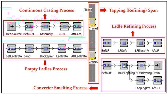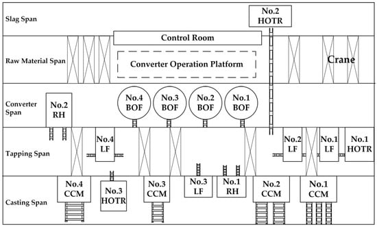 Yang, J.; Zhang, J.; Guan, M.; Hong, Y.; Gao, S.; Guo, W.; Liu, Q. Fine Description of Multi-Process Operation Behavior in Steelmaking-Continuous Casting Process by a Simulation Model with Crane Non-Collision Constraint. Metals 2019, 9, 1078. https://doi.org/10.3390/met9101078