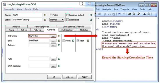 - The scheduling schemes of production plans for simulation are obtained by the artificial or scheduling models in advance, which mainly contains the expected starting (completion) times of casts in CCM and the facility assignments of heats in each process;