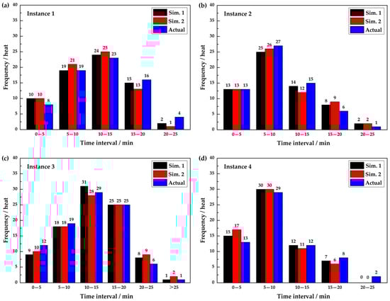 - The processing times of heats in each process are determined by analyzing the statistical results of actual production, and the data of processing times with serious delays is removed without considering in simulation;