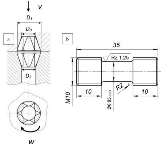 Figure 2a. The material processing was performed at 100 °C with an extruding velocity (υ) of 1 mm/min and a rotational velocity (ω) of 1 rpm. According to [