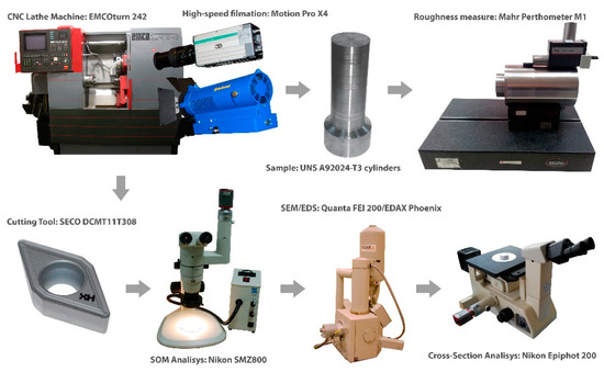 Since the 1930s, the most used aluminum alloys in the aerospace sector have been 2xxx, 7xxx, and 6xxx. These kinds of alloys present excellent mechanical properties and good corrosion resistance [3]. Particularly, UNS A92024 is widely used for structural parts in different aircraft programs. These parts usually have high surface integrity requirements, although need to be machined using different machining processes. Despite aluminum alloys usually being considered as easy to machine materials, an increase of the material ductility caused by the amount of copper within the alloy—up to 4% in A92024 [4]—decreases its machinability [5,6], mainly because of the increase in the contact length of the tool–chip interface, which increases cutting forces, temperature, and tool wear.