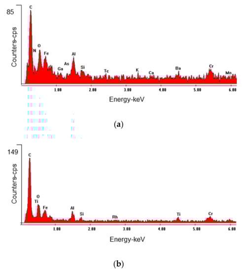 3.2. Scanning Electron Microscope (SEM) and Energy Dispersive Spectrometer (EDS) Results
