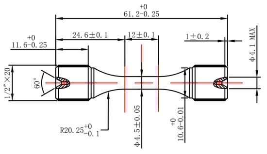 Geometry of cylindrical specimens used for naturally initiated short fatigue crack tests. The unit of dimensions is in mm.