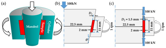 - Lee, D.J.; Kim, H.S. Finite element analysis for the geometry effect on strain inhomogeneity during high-pressure torsion. J. Mater. Sci. 2014, 49, 6620. [Google Scholar] [CrossRef]