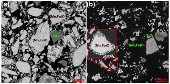 - Yi, L.; Huang, Z.; Jiang, T.; Zhao, P.; Zhong, R.; Liang, Z. Carbothermic Reduction of Ferruginous Manganese Ore for Mn/Fe Beneficiation: Morphology Evolution and Separation Characteristic. Minerals 2017, 7, 167. [Google Scholar] [CrossRef]