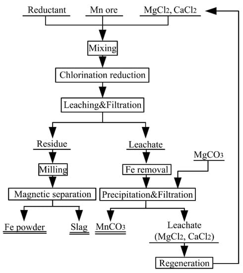 Yu, D.; Cui, F.; Cong, Y.; Zhang, C.; Tian, Q.; Guo, X. Simultaneous Selective Chlorination and Carbothermic Reduction of High-Iron Manganese Ore for the Recovery of Manganese Chloride and Metallic Iron. Metals 2019, 9, 1124. https://doi.org/10.3390/met9101124