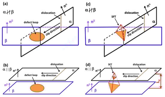 - Fan, H.; El-Awady, J.A.; Wang, Q. Towards further understanding of stacking fault tetrahedron absorption and defect-free channels—A molecular dynamics study. J. Nucl. Mater. 2015, 458, 176–186. [Google Scholar] [CrossRef]