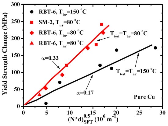 - Fabritsiev, S.A.; Pokrovsky, A.S. Effect of irradiation temperature and dose on radiation hardening of some pure metals. J. Nucl. Mater. 2011, 417, 940–943. [Google Scholar] [CrossRef]