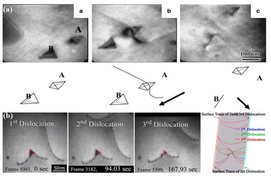 - Robertson, I.M.; Beaudoin, A.; Al-Fadhalah, K.; Chun-Ming, L.; Robach, J.; Wirth, B.D.; Arsenlis, A.; Ahn, D.; Sofronis, P. Dislocation-obstacle interactions: Dynamic experiments to continuum modeling. Mater. Sci. Eng. A-Struct. Mater. Prop. Microstruct. Process. 2005, 400, 245–250. [Google Scholar] [CrossRef]