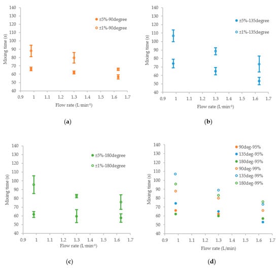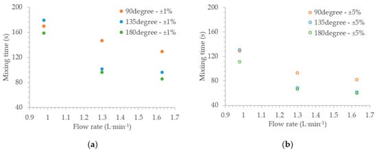 | - | Flow Rate (L·min−1) | Mixing Time (s) | ||||||||