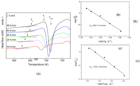 - Zhang, C.; Qiao, J.C.; Pelletier, J.M.; Yao, Y. Arrhenius activation of Zr65Cu18Ni7Al10 bulk metallic glass in the supercooled liquid region. Intermetallics 2017, 86, 88–93. [Google Scholar] [CrossRef]