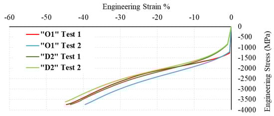 - The compression yield strength was higher for “O1” than for “D2” tool steel.