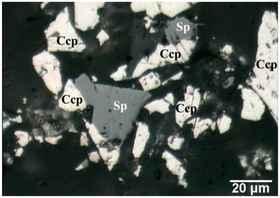 The mineralogical compositions of the concentrate and leaching residue were determined using Philips PW-1710 X-ray diffractometer (Philips, Eindhoven, Netherlands). Data obtained by X-ray diffraction were analyzed by Powder Cell computer software []. Qualitative and quantitative microscopic investigations were performed in reflected light on Carl Zeiss-Jena, JENAPOL-U microscope (Carl Zeiss, Jena, Germany).