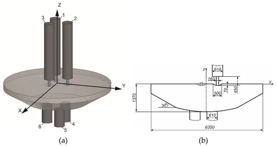 10] was based on the task of intensifying magnetohydrodynamic effects and heat transfer in existing three-electrode furnaces by installing additional hearth electrodes, which are located in the centers of stagnant zones. Thus, in the furnace, the angle between the adjacent axes of the roof and bottom electrodes is 60°. In addition, the power supply of the proposed furnace is proposed to be carried out from special converters that provide power supply with both direct current and low-frequency current (0.01–1 Hz) with adjustable parameters of amplitude, shape, phase, and frequency. According to [