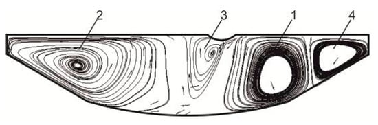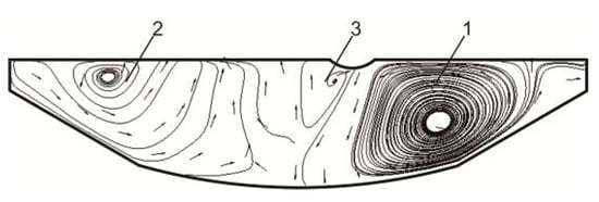 Figure 6) in the structure of the flows in the vertical plane. In this case, the intensity of the flows in the second and third circuit rose.