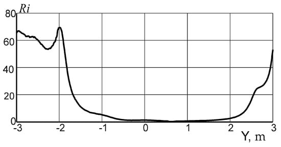 The graph of distribution of the local Richardson number along the bath diameter is shown in