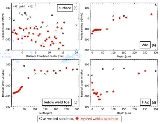- Shobu, T.; Konishi, H.; Mizuki, J.; Suzuki, K.; Suzuki, H.; Akiniwa, Y.; Tanaka, K. Evaluation of subsurface distribution of residual stress in austenitic stainless steel using strain scanning method. Mater. Sci. Forum 2006, 524, 691–696. [Google Scholar] [CrossRef]