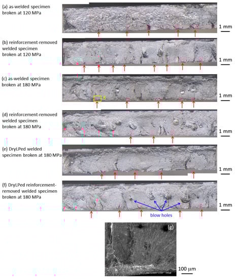 - Sano, Y.; Masaki, K.; Gushi, T.; Sano, T. Improvement in fatigue performance of friction stir welded A6061-T6 aluminum alloy by laser peening without coating. Mater. Des. 2012, 36, 809–814. [Google Scholar] [CrossRef]