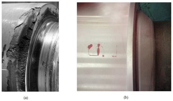 Roll failures produced for stress concentration: (a) Backup Roll spalling; (b) Work Roll cracks.