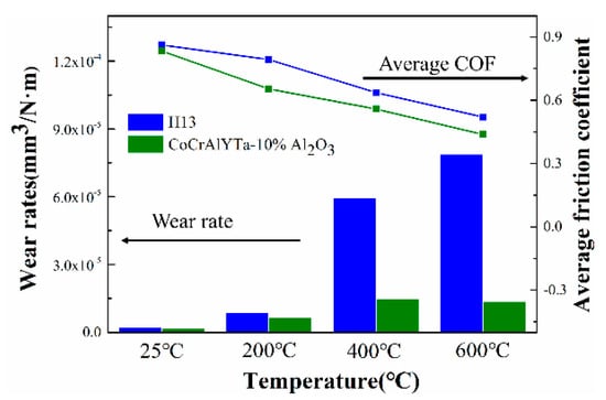 Effects of Temperature on Wear Properties and Mechanisms of HVOF Sprayed CoCrAlYTa-10%Al2O3 Coatings and H13 Steel