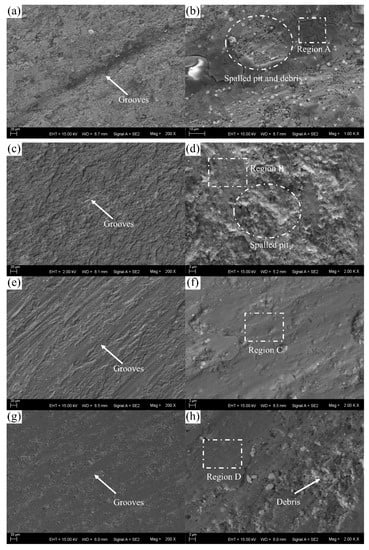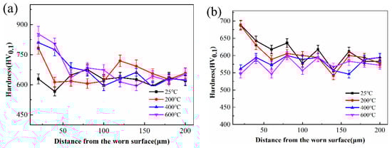 3.2. Morphologies, Microstructures, and Microhardness of Worn Surface