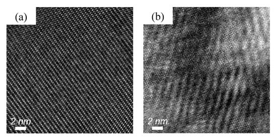 High resolution TEM images of the σ and BCC phases in the AlCoCrFe2.7NiMo coating. (a) shows σ phase; (b) shows BCC phase.