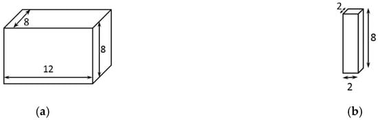 Diagram of solid samples with different dimensions. The heights are the same of 8 mm: (a) the edge length of the rectangular cross section is 12 mm × 8 mm; (b) the edge length of the square cross section is 2 mm.