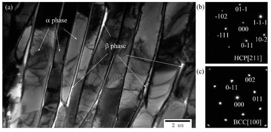 (a) The microstructure of HIP-treated Ti6Al4V; the diffraction patterns of (b) α phase and (c) β phase measured by TEM.
