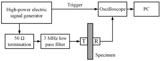 Schematic of the experimental setup for nonlinear ultrasonic measurements based on a through-transmission mode.