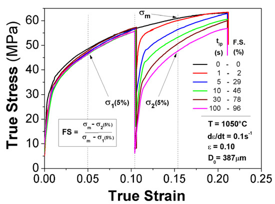 3.3. Evaluation of Maximum Interpass Time Conditions for the Initiation and Propagation of DRX