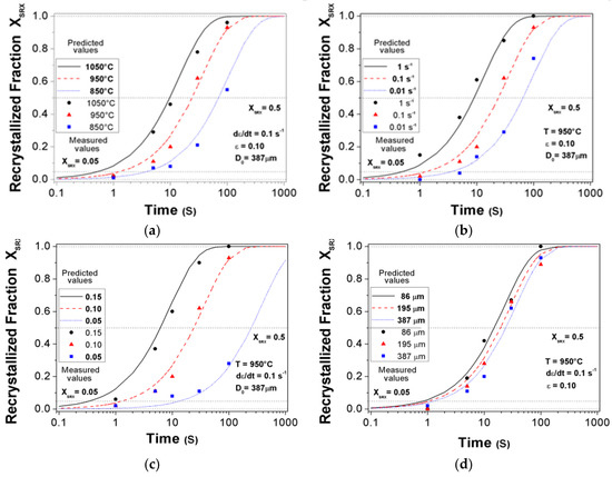3.1.1. Influence of Deformation Conditions on the Kinetics of Static Recrystallization