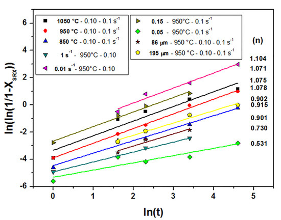 - Elwazri, M.; Essadiqi, E.; Yue, S. The Kinetics of Static Recrystallization in Microalloyed Hypereutectoid Steels. ISIJ Int. 2004, 44, 162–170. [Google Scholar] [CrossRef][Green Version]