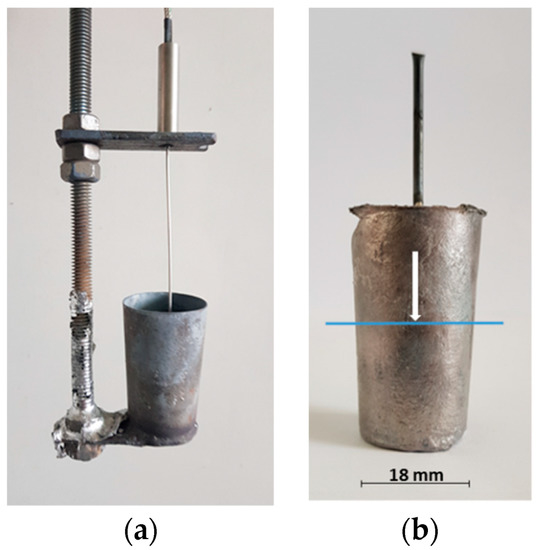 (1) Pre-treatment of stainless steel mold (Figure 2), including coating the inner surface with a non-sticking coating, installation on the central vertical axis of the mold a 1 mm diameter, K-type thermocouple (SS316), protected by a thin-walled steel tube, mounting to the stand and heating the mold up to 200 °C.