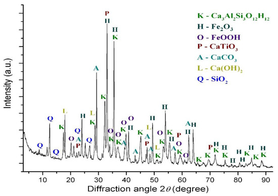 The XRD pattern of red mud from Ural Aluminum Plant (Russia, Kamensk-Uralsky).