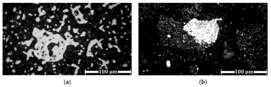 Figure 12 shows the influence of roasting time on the iron grains’ growth with the addition of 22.01% K2CO3 at different temperatures. In the samples with K2CO3 obtained at 1000 °C, an increase of the roasting time led to iron grain growth compared with the sample without K2CO3 addition (Figure 12a). On the contrary, at 1100 °C, the iron grains’ size in the samples without alkaline additions after 120 and 180 min of roasting was considerably larger compared with the sample with the addition of K2CO3 (Figure 12b). The influence of roasting time at 1200 °C and 22.01% K2CO3 was similar to its influence for 17.1% Na2CO3 addition, but the iron grain size in the sample with K2CO3 addition was significantly smaller than in the sample with Na2CO3 addition and was less than 27% (Figure 12c).
