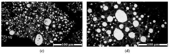 Microstructure of reduced samples after 3 h of roasting at 1200 °C with 17.1% Na2CO3 (a) and 22.01% K2CO3 (b), as well as without additions at 1300 °C (c) and 1350 °C (d).