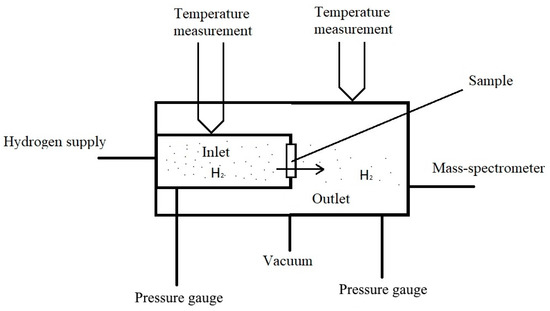 Using a modified gas chamber, which is described below, it is possible to study the diffusion of hydrogen at various temperatures. The principle of operation of most installations for the diffusion of hydrogen from the gas phase can be understood from Figure 1.