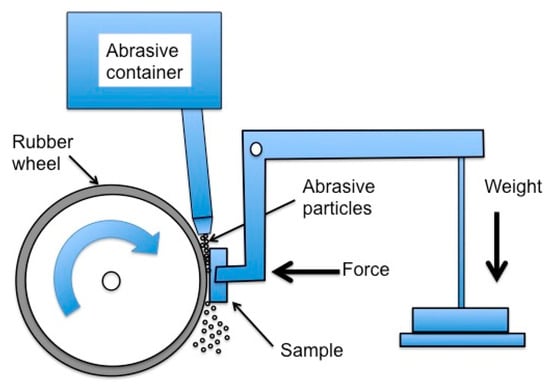 Schematic draw of the abrasive wear test undertaken for this study.