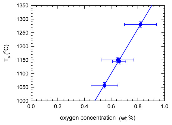 The temperature of the onset of the endothermic DSC peak attributed to the dissolution of the hcp phase plotted as a function of the oxygen concentration in the sample.
