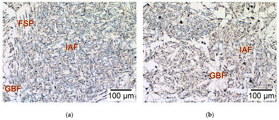 Microstructures of the simulated HAZs in the thick HSLA steel plates (a) 2Ca and (b) 25Ca at −20 °C after large heat input welding at 400 kJ cm−1.