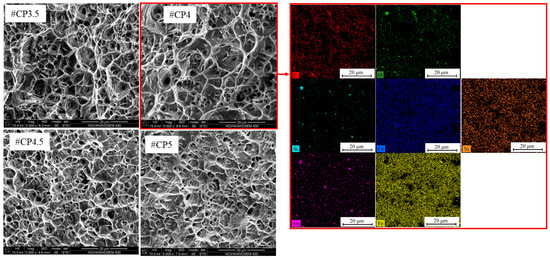 Considering the improvement of molding and deposition rate, the following analysis of the microstructure and properties are only studied for #CP3.5, #CP4, #CP4.5 and #CP5.