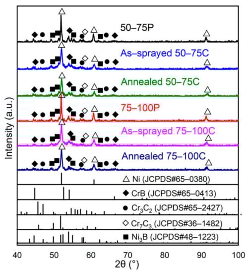 | As-sprayed 50–75C | 58.4 | 12.3 | 8.4 | 3.2 | 2.2 | 15.5 |
