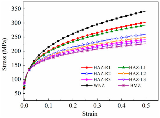 - Xing, L.; Zhan, M.; Gao, P.F.; Ma, F. A method for establishing a continuous constitutive model of welded metals. Mater. Sci. Eng. A 2018, 718, 228–240. [Google Scholar] [CrossRef]