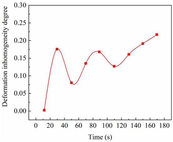 Figure 12 shows the variation of DI during the forming process of TWB. It can be found that the DI increases gradually with the forming process. This may be related to the deformability difference between the WZ and BMZ increasing with strain, as shown in Figure 2.