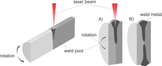 - Schimek, M.; Springer, A.; Pfeifer, R.; Kaierle, S. Laser welding of dissimilar materials for lightweight construction and special applications. In Proceedings of the SPIE 8603, High-Power Laser Materials Processing: Lasers, Beam Delivery, Diagnostics, and Applications II; SPIE: New York, NY, USA, 2013; Volume 86030J. [Google Scholar] [CrossRef]