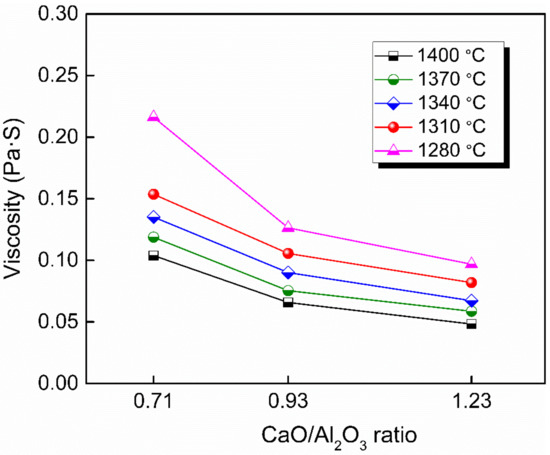 3.2. Effect of CaO/Al2O3 Ratio on the Viscosity