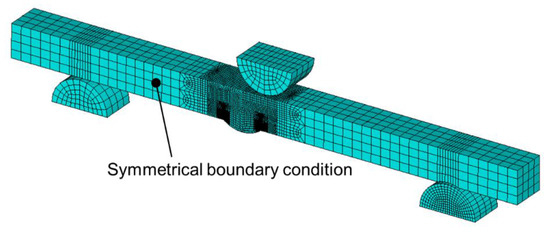 Finite element models of W created based on the shape measurements of the specimens under the fatigue limit using a laser displacement gauge. The model corresponded to symmetric half models of the welded specimen that comprised a 20-node hexahedral element with a minimum element size of 0.05 mm.