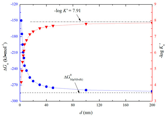 Based on Equations (1), (16), and (17), the change of Gibbs free energy for forming nano-magnesia with different size can be calculated as